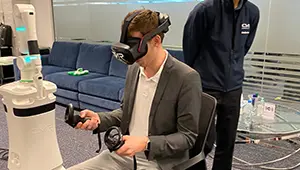 Tauchen Sie ein in die Welt des Versius Plus – nicht nur theoretisch, sondern auch in der Praxis. Setzen Sie sich an den Joy-Stick oder begleiten Sie eine virtuelle OP via VR-Brille. Lernen Sie den Roboter so richtig kennen.